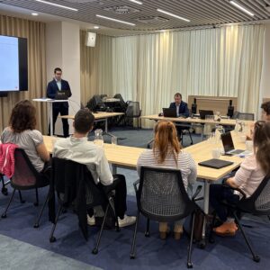 V rámci programu Talent Management FMV se uskutečnila již druhá společná akce, tentokrát v podobě odborné exkurze studentů do UniCredit Bank. Setkání nabídlo studentům jedinečnou příležitost nahlédnout do fungování banky z pohledu moderních technologií, automatizace a bezpečnosti.