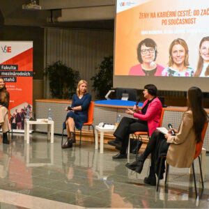 Pro studentky FMV byla připravena inspirativní panelová diskuze, která představila příběhy úspěšných absolventek fakulty a jejich různorodé kariérní cesty. V rámci dvou moderovaných panelů – Ženy na kariérní cestě: od začátků po současnost a Prolomení Glass Ceiling aneb jak růst bez limitů – vystoupily osobnosti z akademického i byznysového prostředí. Účastnice akce získaly cenné rady o tom, jak důležité jsou ženské vzory,dozvěděly se, jak důvěřovat svým instinktům a schopnostem při budování profesní kariéry a mnoho dalšího. Diskuze byla nejen motivující, ale také otevřeně ukázala, jak čelit výzvám a využít příležitostí v pracovním i osobním životě.