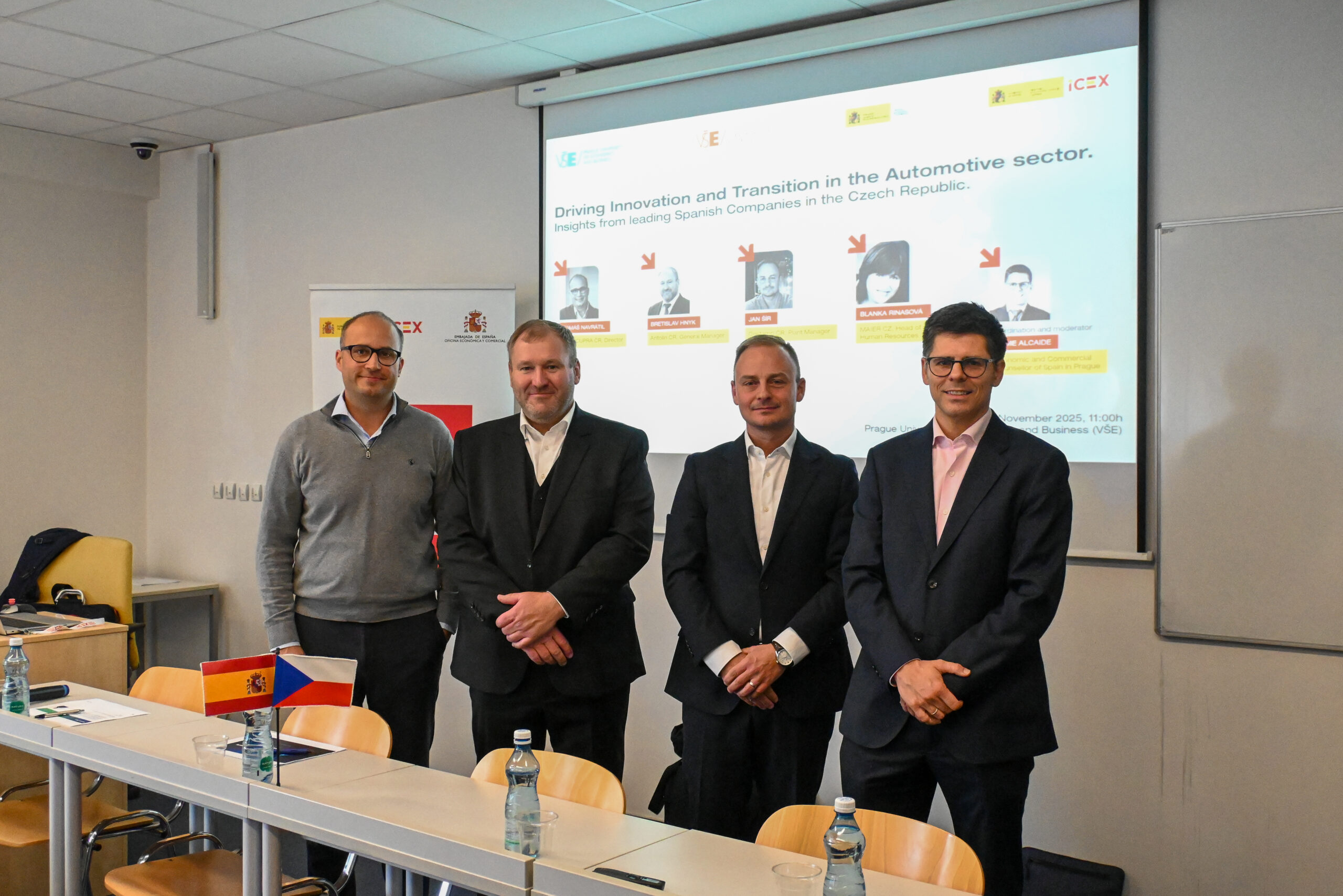 Automobilový sektor prochází hlubokou transformací, zaměřenou na inovace, udržitelnost a dekarbonizaci. Akce se zaměřila na hlavní výzvy a příležitosti tohoto přechodu, mezinárodní konkurenceschopnost, nové mobility trendy a zkušenosti španělských firem působících v Česku. Panelisté z významných společností diskutovali o strategiích a možnostech dalšího rozvoje sektoru.