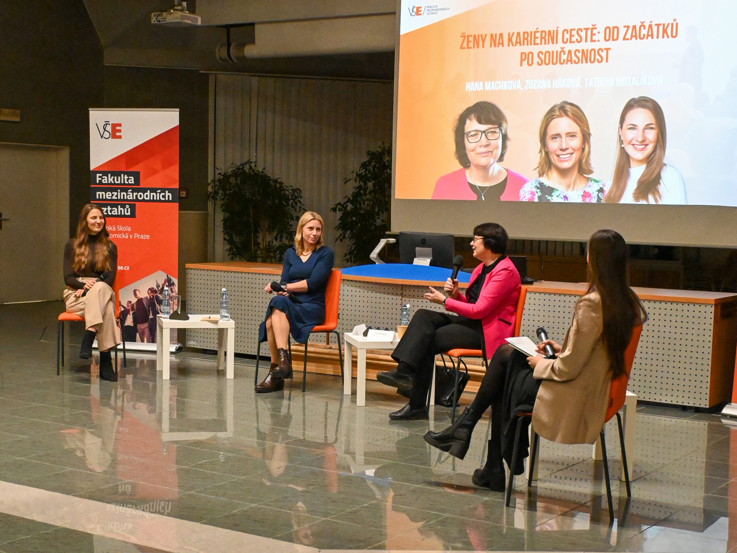 Pro studentky FMV byla připravena inspirativní panelová diskuze, která představila příběhy úspěšných absolventek fakulty a jejich různorodé kariérní cesty. V rámci dvou moderovaných panelů – Ženy na kariérní cestě: od začátků po současnost a Prolomení Glass Ceiling aneb jak růst bez limitů – vystoupily osobnosti z akademického i byznysového prostředí. Účastnice akce získaly cenné rady o tom, jak důležité jsou ženské vzory,dozvěděly se, jak důvěřovat svým instinktům a schopnostem při budování profesní kariéry a mnoho dalšího. Diskuze byla nejen motivující, ale také otevřeně ukázala, jak čelit výzvám a využít příležitostí v pracovním i osobním životě.
